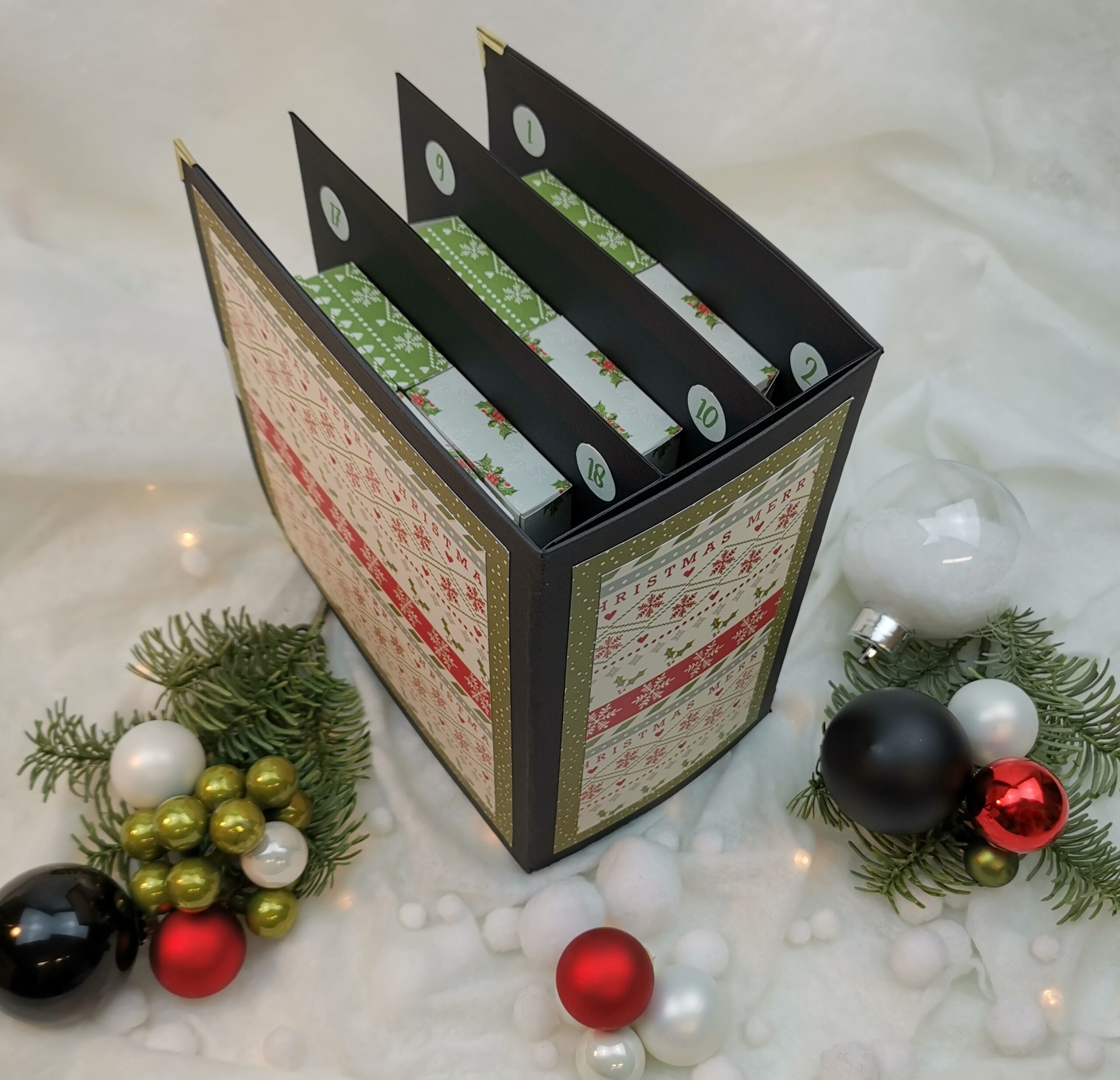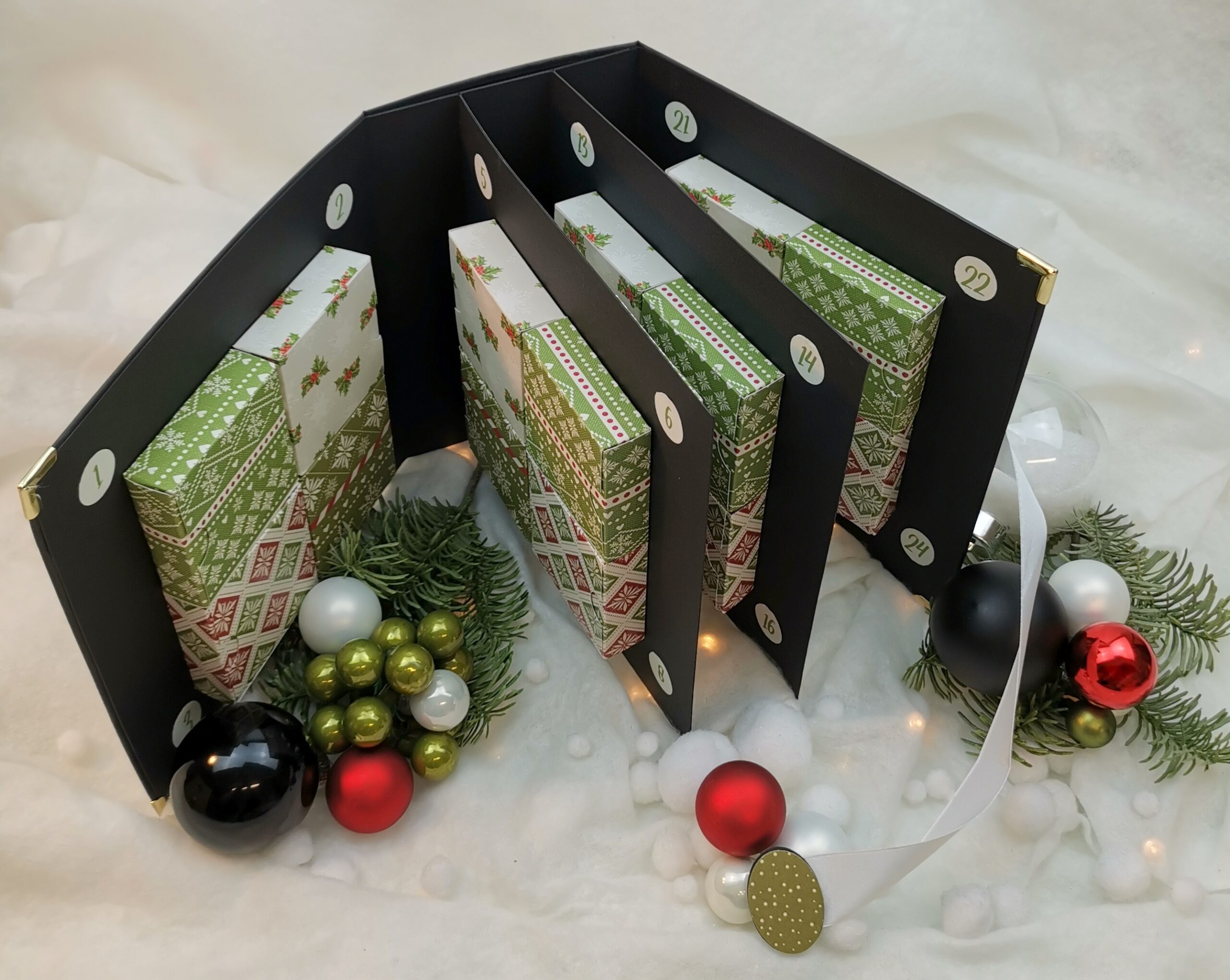 Da jeder Adventskalender ein Unikat ist, kann im Design, als auch die Anordnung des Gesamtarrangements in Form etwas unterschiedlich ausfallen.